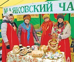К празднику его организаторы подготовили сувенирную продукцию с соответствующей символикой: кружки, тарелки, календари, которые пользовались большим спросом. И звучали с сельской сцены озорные частушки - и все о чае, нестареющее «У самовара я и моя Маша»... А зрители тем временем угощались горячим напитком и «фирменными» малобоевскими пирожками, что разносили барышни-крестьянки в разноцветных шалях. Была и дегустация угощений, привезенных делегациями сельских поселений. И вся эта сладкая выставка была съедена, а уж сколько стаканов чая выпито - и не сосчитать.