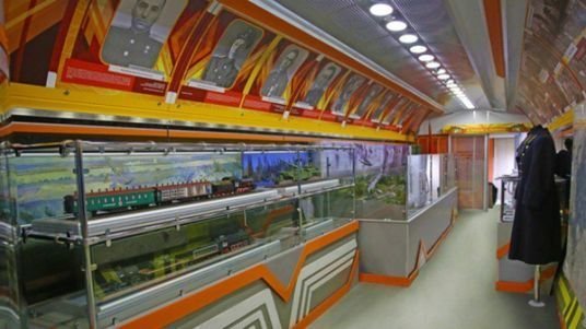 Внутри поезда-выставки можно увидеть, как выглядят самый современный железнодорожный транспорт, а также познакомиться с «пенсионерами» отрасли: самыми первыми поездами, электровозами, тепловозами, первой формой проводников и так далее. В рамках музея представлено множество различных макетов.