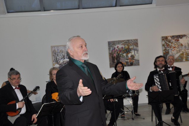 Валерий Радченко в этот вечер порадовал почитателей своего таланта не только своими картинами, но ещё и неповторимым голосом, исполнив несколько вокальных номеров в сопровождении ансамбля народных инструментов «Мозаика».
