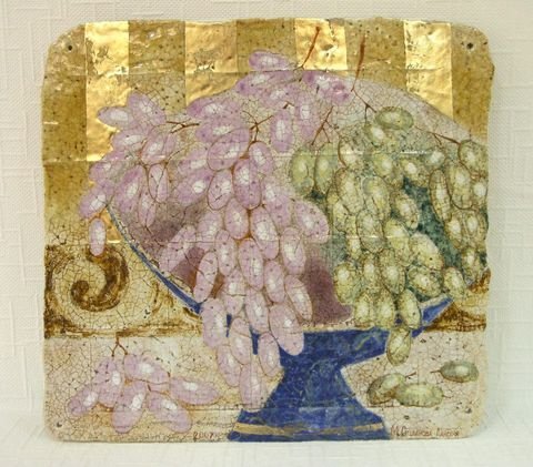 В экспозиции представлено более 50 керамических пластов и авторского стекла.