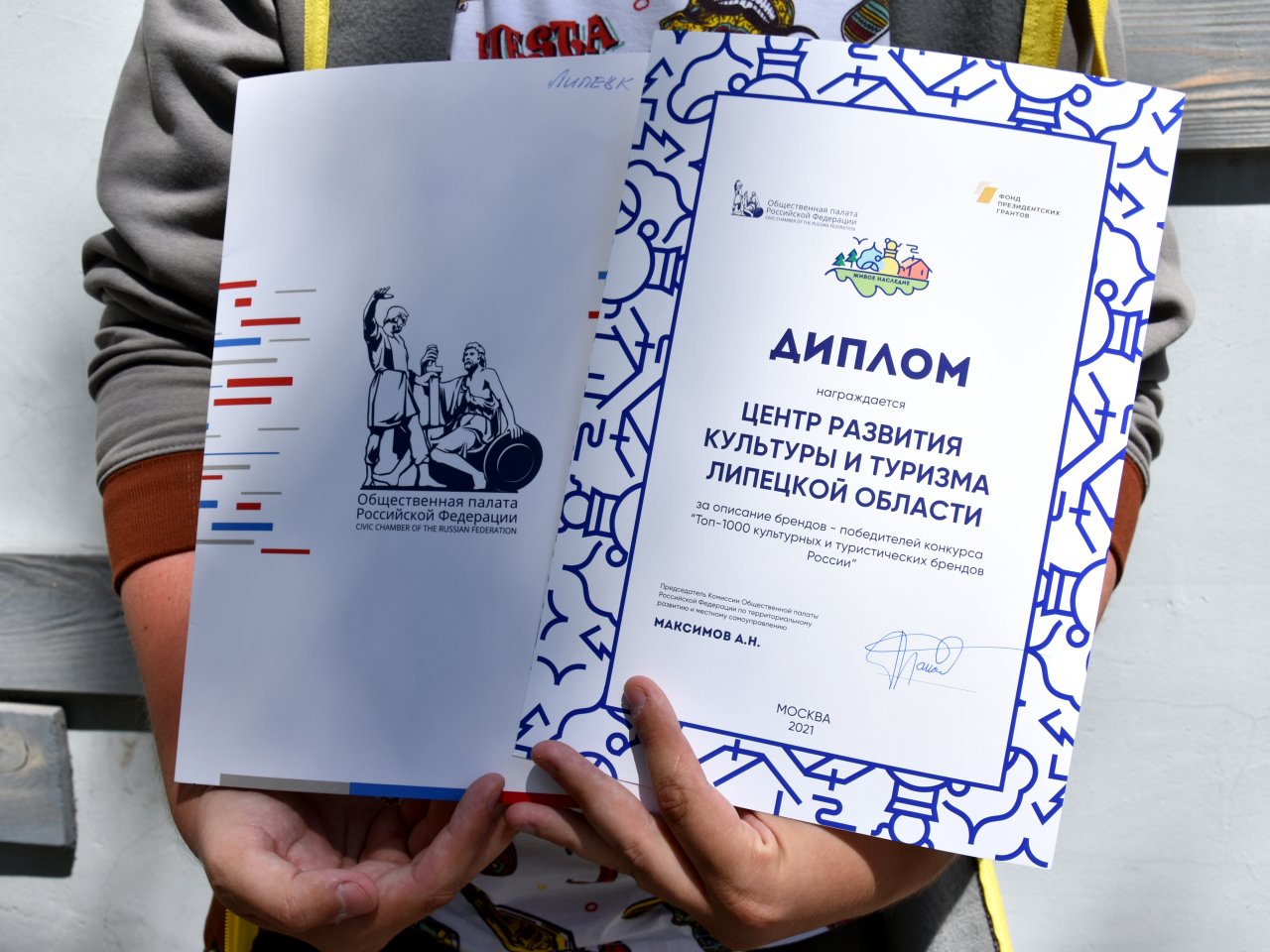 На Втором российском фестивале «Живое наследие», состоявшемся на площадках Общественной палаты РФ в Москве, опубликовали списки ТОП-1000 культурных и туристических брендов России. Липецкая область завоевала в топе три места, а Центр развития культуры и туризма отметили дипломом за поддержку проекта и описание региональных брендов.