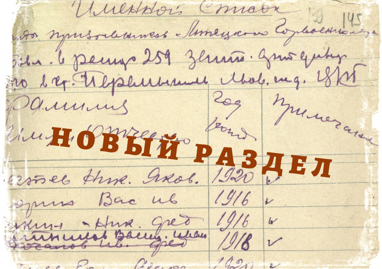 В год 75-летия Великой Победы и в преддверии Дня защитника Отечества на ресурсе Липецкой областной универсальной научной библиотеки «Память Вечного огня» создан новый раздел «Архивные документы», который даёт возможность найти информацию о призывниках (военнообязанных), мобилизованных в 1939 — 1945 гг. с территории нынешней Липецкой области, а также сопроводительные документы с военно-пересыльных пунктов, госпиталей, располагавшихся в нашем регионе.