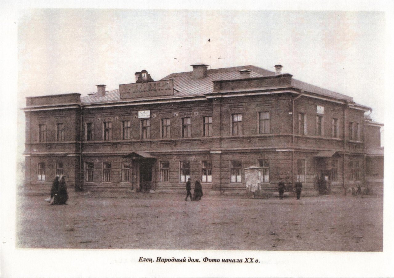 Здание Драматического театра города Ельца было построено в 1911 году на Сенной площади города Елецким земством и Губернским Комитетом Попечительства о Народной Трезвости. Дом предназначался для народных чтений, музыкальных вечеров, хоров, театральных представлений. Народный Дом должен был стать источником и центром просвещения.