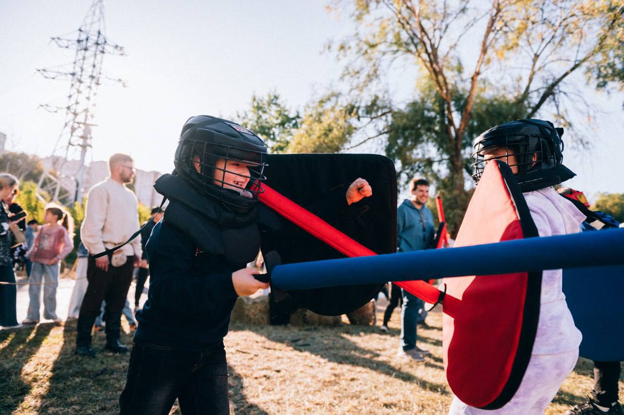 Посмотреть забавные уличные театры и поболеть за богатырей.