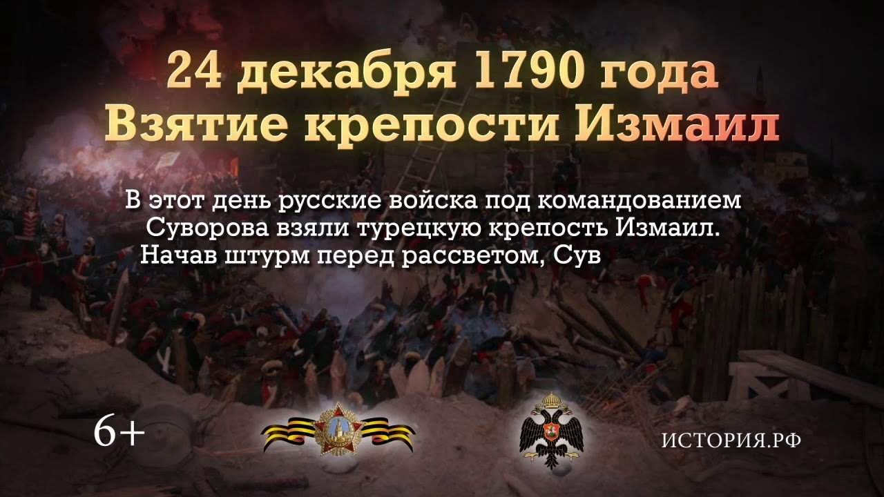 24 декабря отмечается День воинской славы России - День взятия русскими войсками турецкой крепости Измаил (1790). Установлен федеральным законом "О днях воинской славы и памятных датах России" от 13 марта 1995 года.
