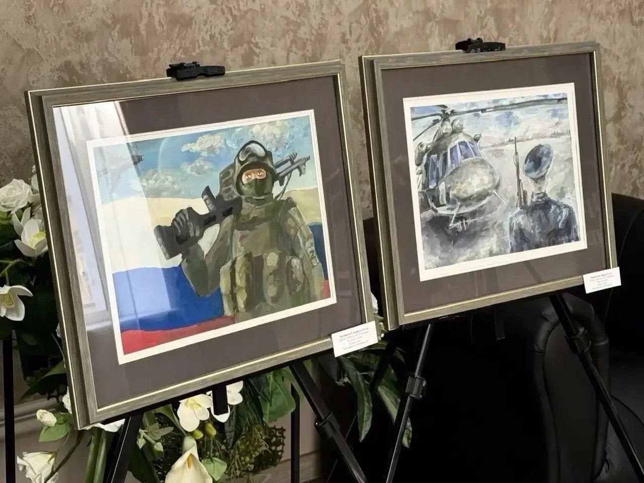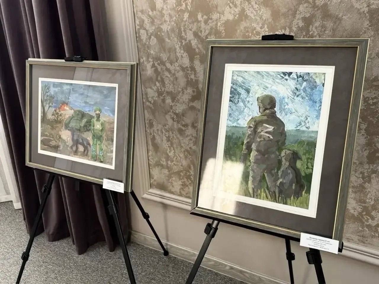 На полотнах — те, кто сегодня стоит на страже рубежей Родины, кто выполняет боевые задачи, рискуя жизнью ради мирного неба.
