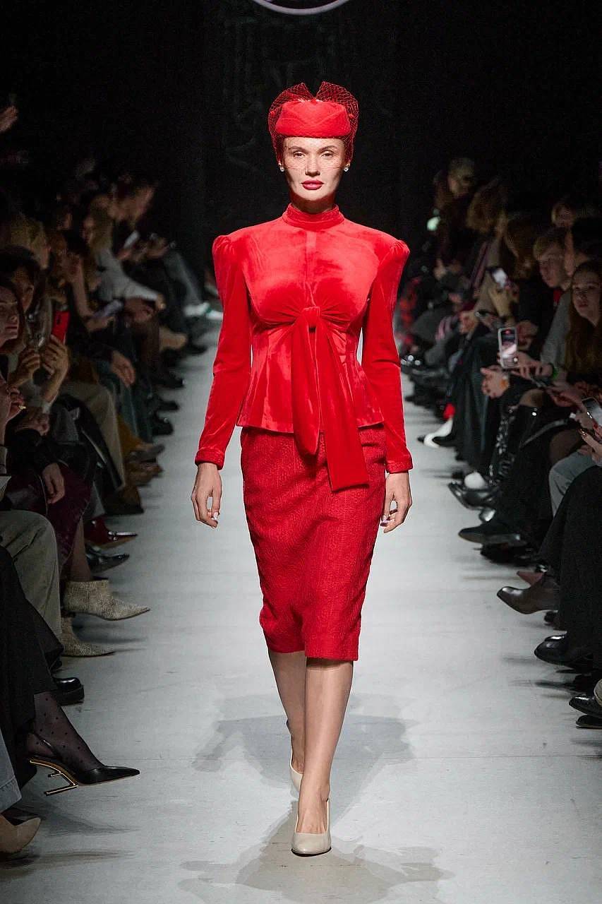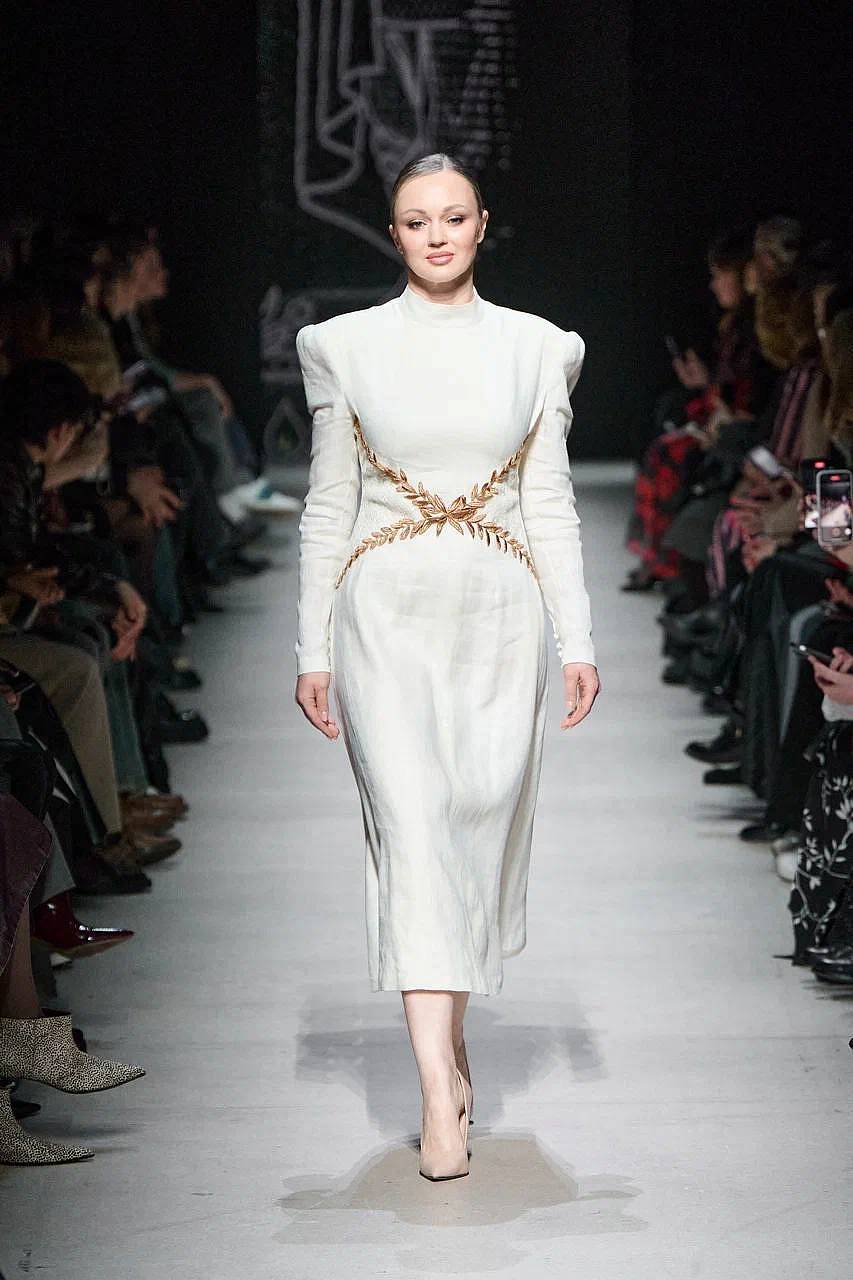 Коллекция «Нежная сила» переосмысливает многовековые техники елецкого кружева, подчеркивая его воздушность и изящество. Основной акцент сделан на женственности и внутренней силе, выраженной через ажурные узоры, плавные силуэты и натуральные ткани. В рамках показа гости увидели платья, накидки, аксессуары и даже экспериментальные вечерние ансамбли, где традиционное кружево сочетается с инновационными материалами. Важный мотив новой коллекции — 80-летие Великой Победы.