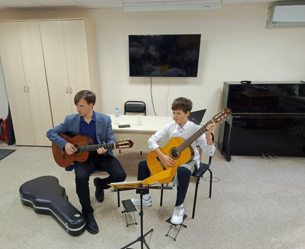В программе: ключевые аспекты постановки на начальном этапе обучения, секреты мастерства в звукоизвлечении и практический мастер-класс с участием воспитанников ДМШ №10 — юных гитаристов Михаила Кочнева и Владислава Катрука (класс преподавателя Валерии Ролдугиной).