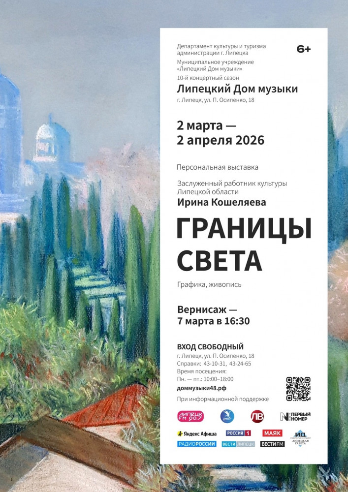 Со 2 марта по 2 апреля здесь будет представлена персональная выставка Заслуженного работника Липецкой области, директора ДХШ им. В.И. Сурикова Ирины Кошеляевой.