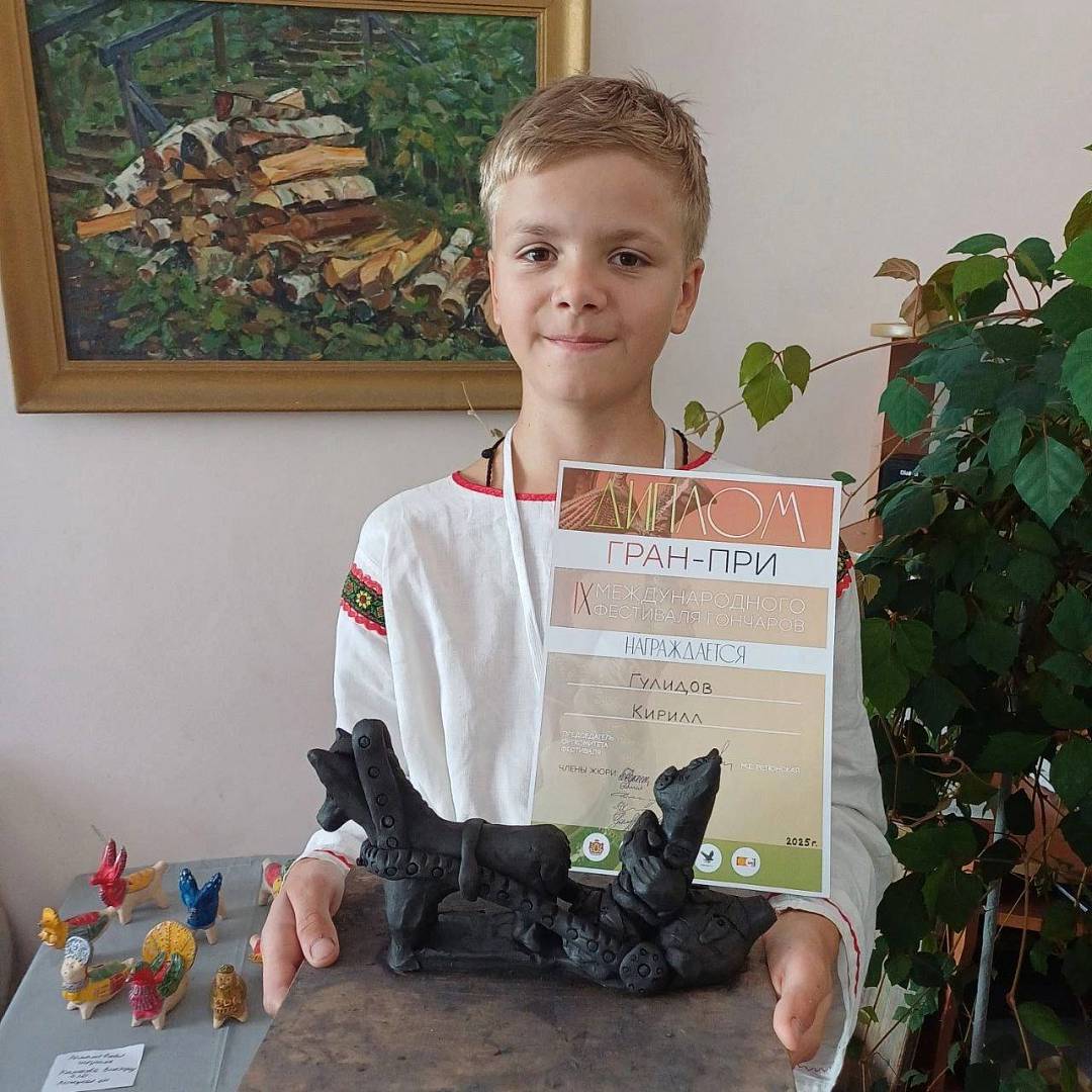 Особенная гордость — победа юного дарования. Кирилл Гулидов, ученик Яны Хариной, взял Гран-при в детском конкурсе (возрастная категория 7-10 лет). Это не просто победа, а уверенная заявка на светлое будущее народных художественных промыслов.