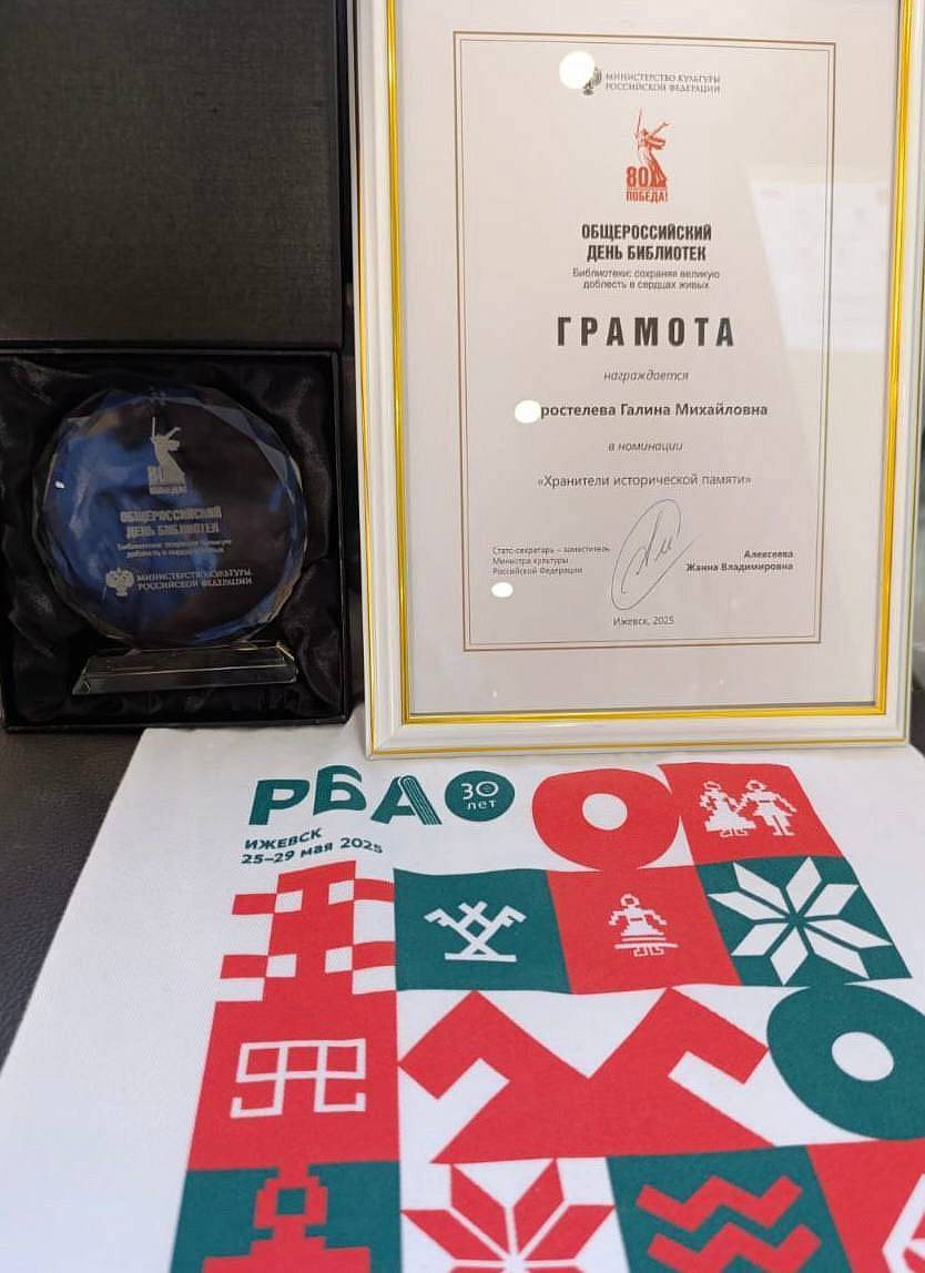 В номинации «Хранители исторической памяти» одним из победителей стала наша землячка - Галина Коростелёва, директор Чаплыгинской центральной межпоселенческой библиотеки. Галине Михайловне вручили грамоту Министерства культуры Российской Федерации.
