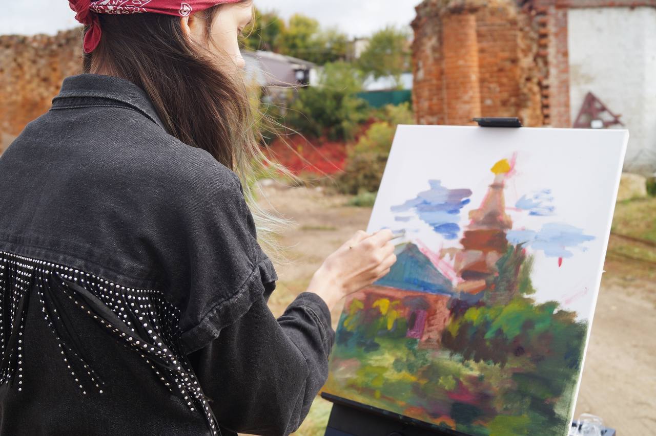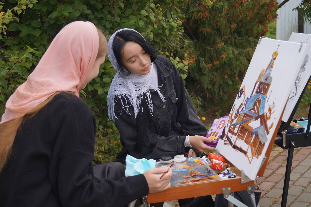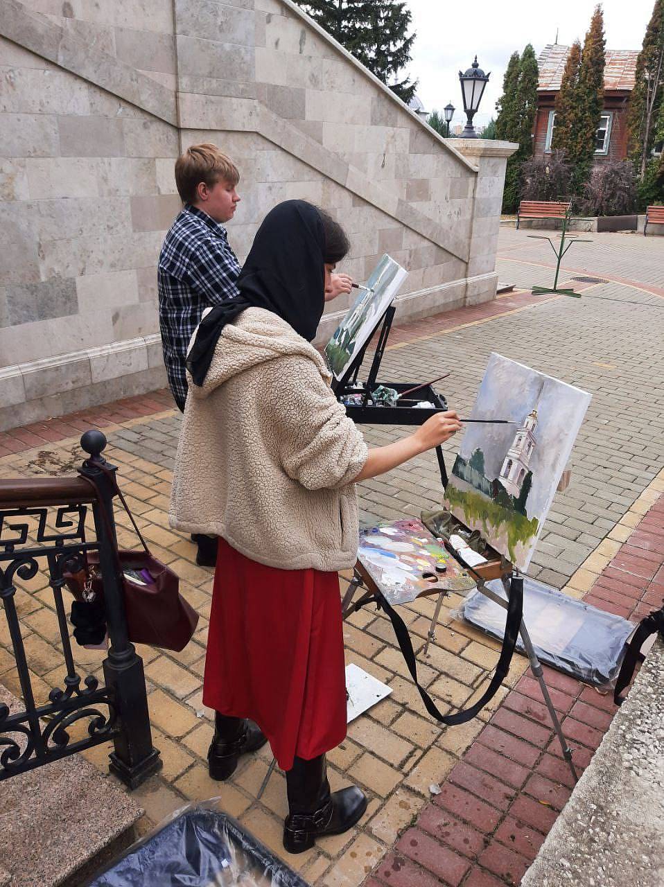Пленэр в монастыре. Группа побывала в Знаменском женском монастыре, где для них провели экскурсию. После этого 20 юных художников устроили пленэр: они рисовали монастырские храмы снаружи и внутри, выбирая самые интересные ракурсы. К ним присоединились ученики и педагоги из елецкой Детской школы искусств №2.