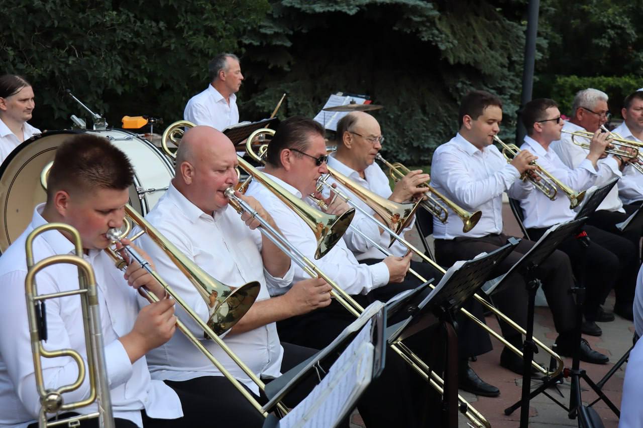 Вчера в рамках фестиваля «Музыка в усадьбах» у дома купца Русинова на улице Ленина Липецкий государственный духовой оркестр под управлением Никиты Трубицина дал праздничный концерт. Вместе с оркестром выступили солисты Липецкой филармонии: Светлана Дедяева, Максим Рихтер и Сергей Блинков.