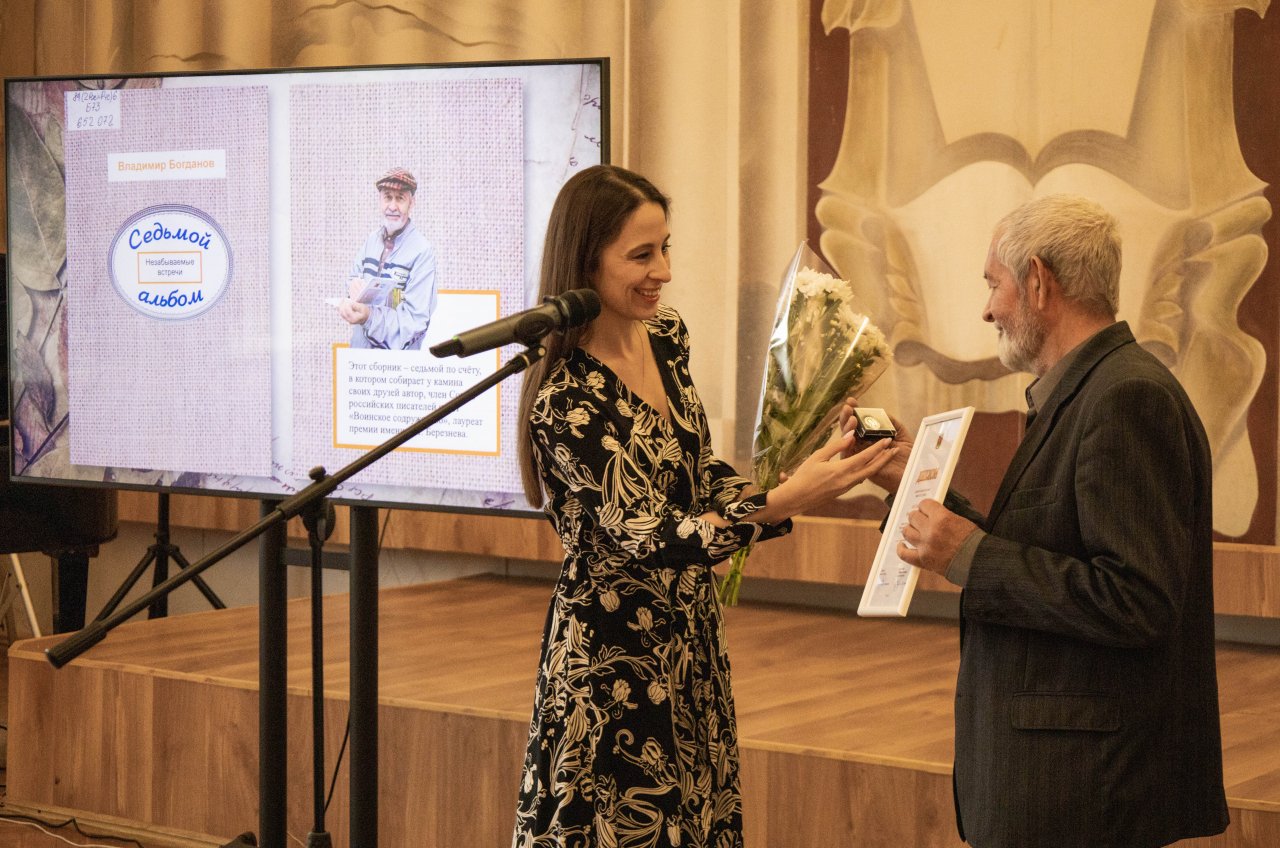 В этом году ее обладателем стал поэт и прозаик, член Союза писателей «Воинское содружество» и Союза российских писателей Владимир Богданов. Награду, присужденную за книгу «Седьмой альбом. Незабываемые встречи», вручила автору начальник управления культуры и туризма Липецкой области Ирина Кремнёва.