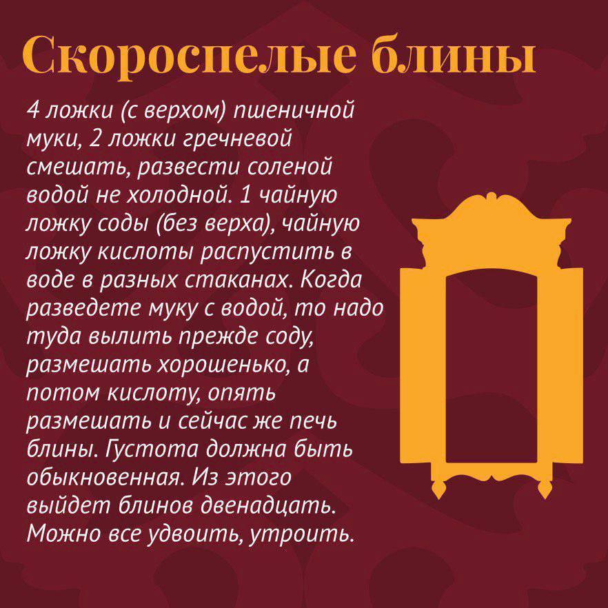 Софья Андреевна Толстая вела кулинарную книгу всю жизнь. Записи делала аккуратно, без пропусков — блины пшеничные, скороспелые, молочные, обыкновенные и даже щавель с блинами. Семья большая, гостей много, просто «пожарить десяток» не получалось.
