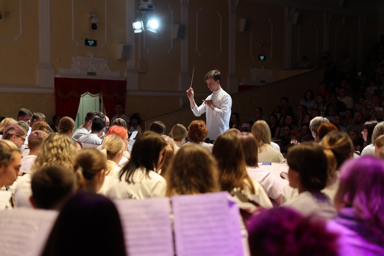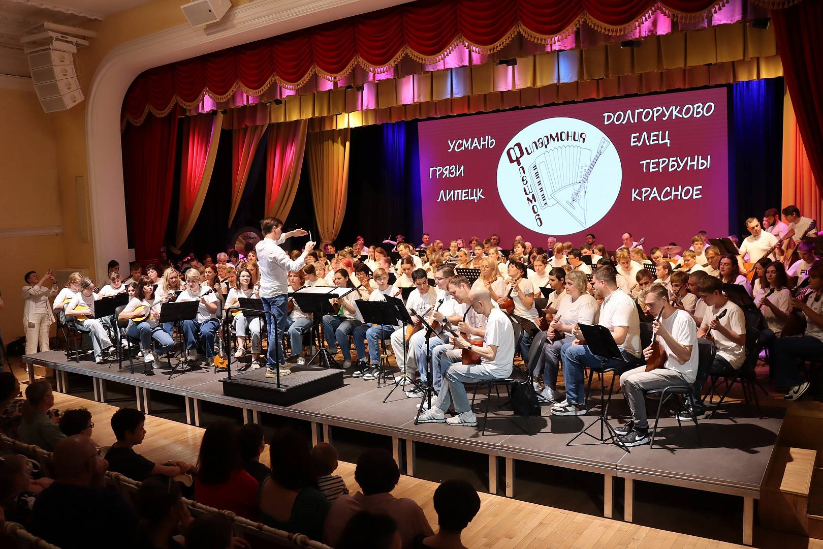 Зал филармонии с трудом вместил всех желающих: ещё никогда на его сцене не располагались сразу 160 музыкантов! Это приехавшие из разных районов Липецкой области ученики музыкальных школ и их преподаватели, а также артисты Липецкого государственного оркестра русских народных инструментов. Руководил необычным оркестром главный дирижер Василий Моисеенко, которому и принадлежит идея собрать такой грандиозный коллектив на одной сцене.