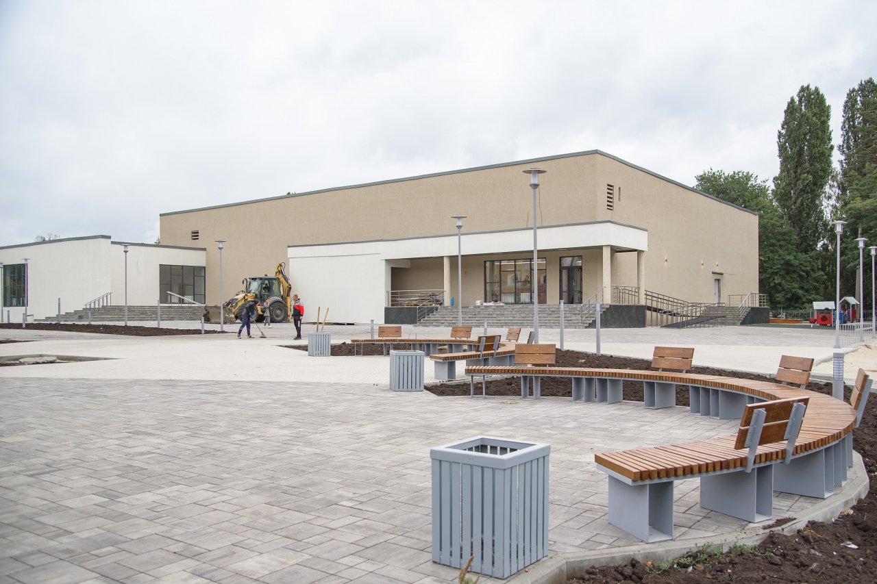 Преображается и территория на площади возле бывшего кинотеатра. Работы идут в рамках проекта «Формирование комфортной городской среды» нацпроекта «Жилье и городская среда». Подрядчик уже установил опоры освещения, малые архитектурные формы и игровое оборудование, практически завершил укладку тротуарной плитки. Вскоре специалисты выполнят озеленение: высадят многолетние растения и уложат рулонный газон.