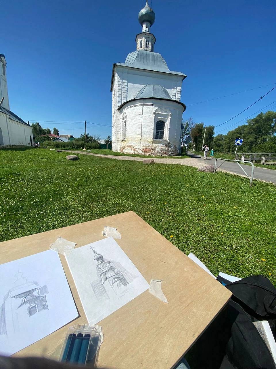 Пленэры в живописных уголках Суздали: у подножия Кабацкой горы, на берегу реки Каменки, в Музее деревянного зодчества.