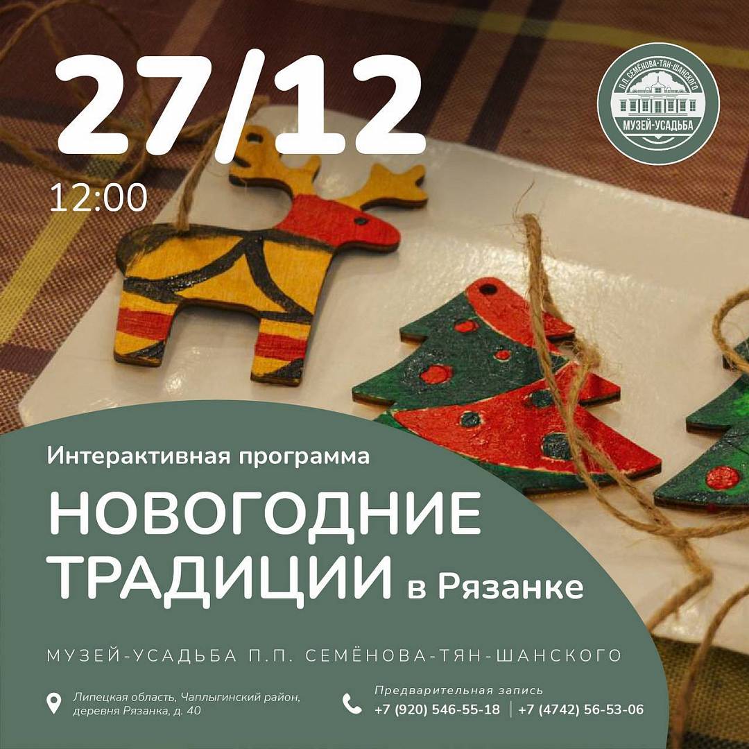 Представьте: Рязанка, усадьба путешественника Семёнова-Тян-Шанского. Дворянский дом, вековой парк, декабрьский воздух.