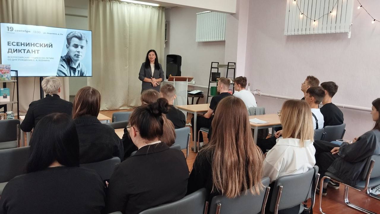 Липецкая областная научная библиотека стала площадкой для всероссийской акции «Есенинский диктант», которая была приурочена к 130-летию со дня рождения великого поэта. Участники окунулись в мир берёз, «страны березового ситца» и золотых рощ, чтобы вспомнить творчество и факты из жизни великого поэта.