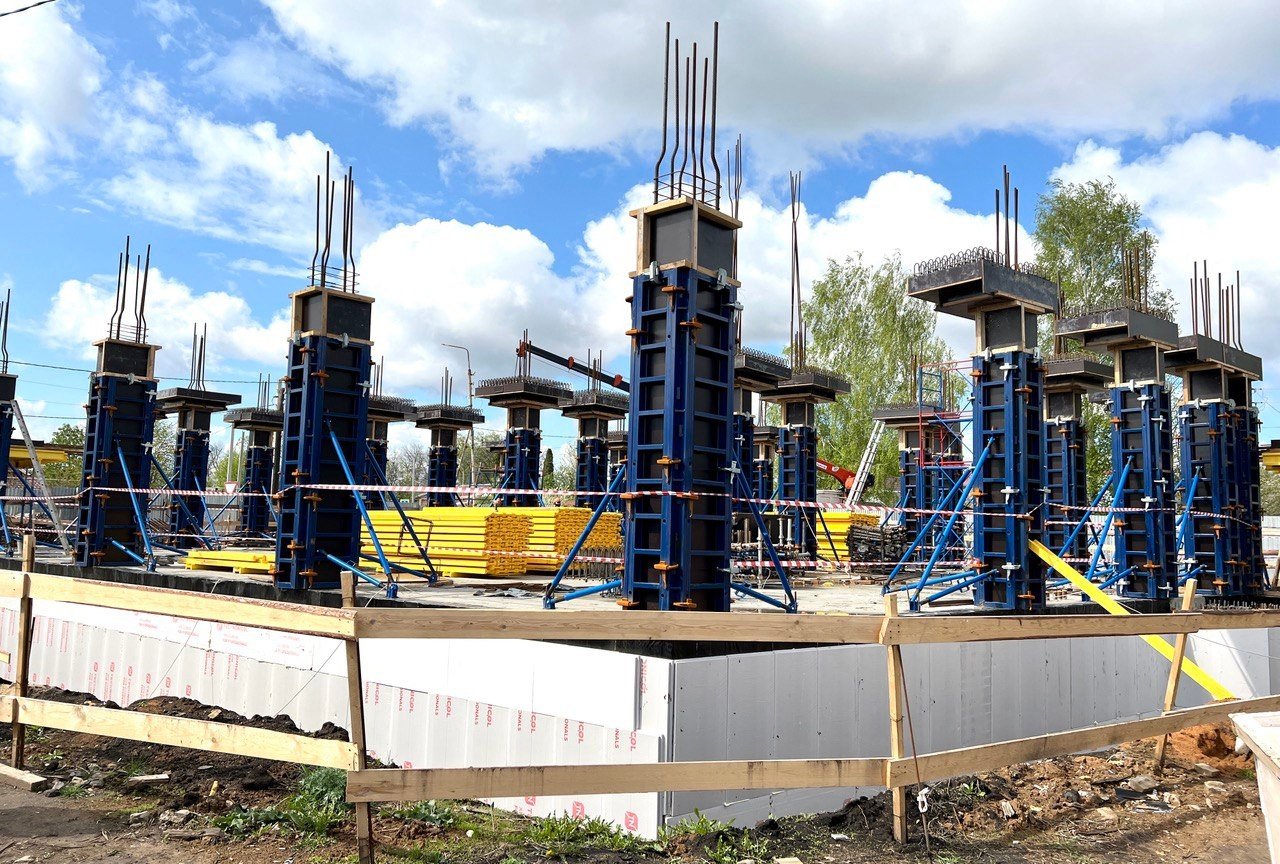 Уже завершены монтаж перекрытий первого этажа здания, опалубки под колонны, утеплен фундамент. Далее строители приступят к армированию перекрытий второго этажа, а также устройству инженерных сетей. Согласно концепции, в трехэтажном здании разместятся медицинский кабинет, концертный и хореографический залы.
