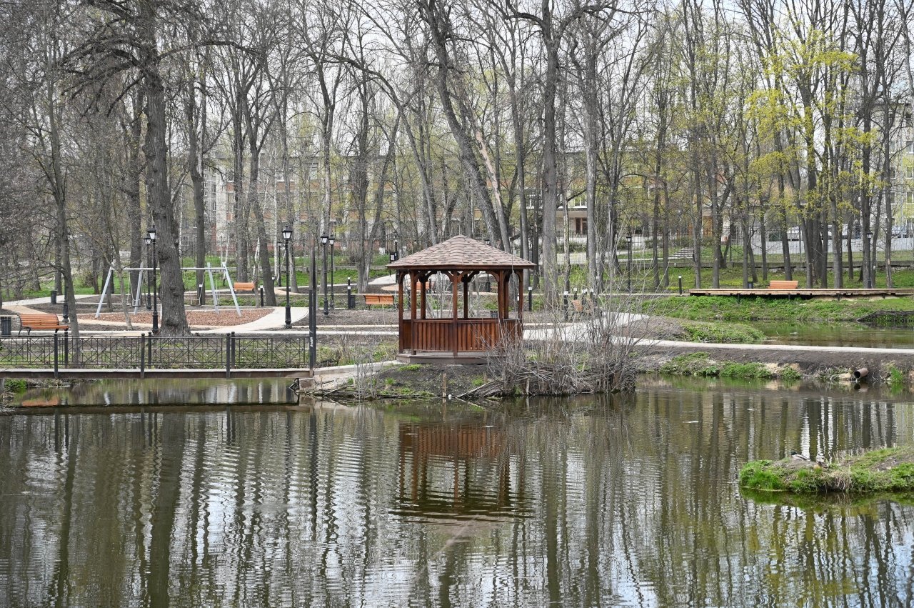 При реконструкции сохраняется историческая и экологическая направленность парка — прекрасное место для прогулок, уединения, занятий спортом и проведения небольших массовых мероприятий. Все покрытия и материалы максимально экологичны: деревянные детские площадки и беседки, второстепенные дорожки из каменного отсева. В обновлённом парке уже проведено новое освещение, установлены фонари, положена тротуарная плитка, установлена сцена, обустроена детская игровая и спортивная площадки, зона для тренажеров. Сейчас идут работы по озеленению, установке малых архитектурных форм, устройству мостиков, ремонту ограждения и входной группы, установке системы наружного освещения. Окончательно парк должен быть готов этим летом.