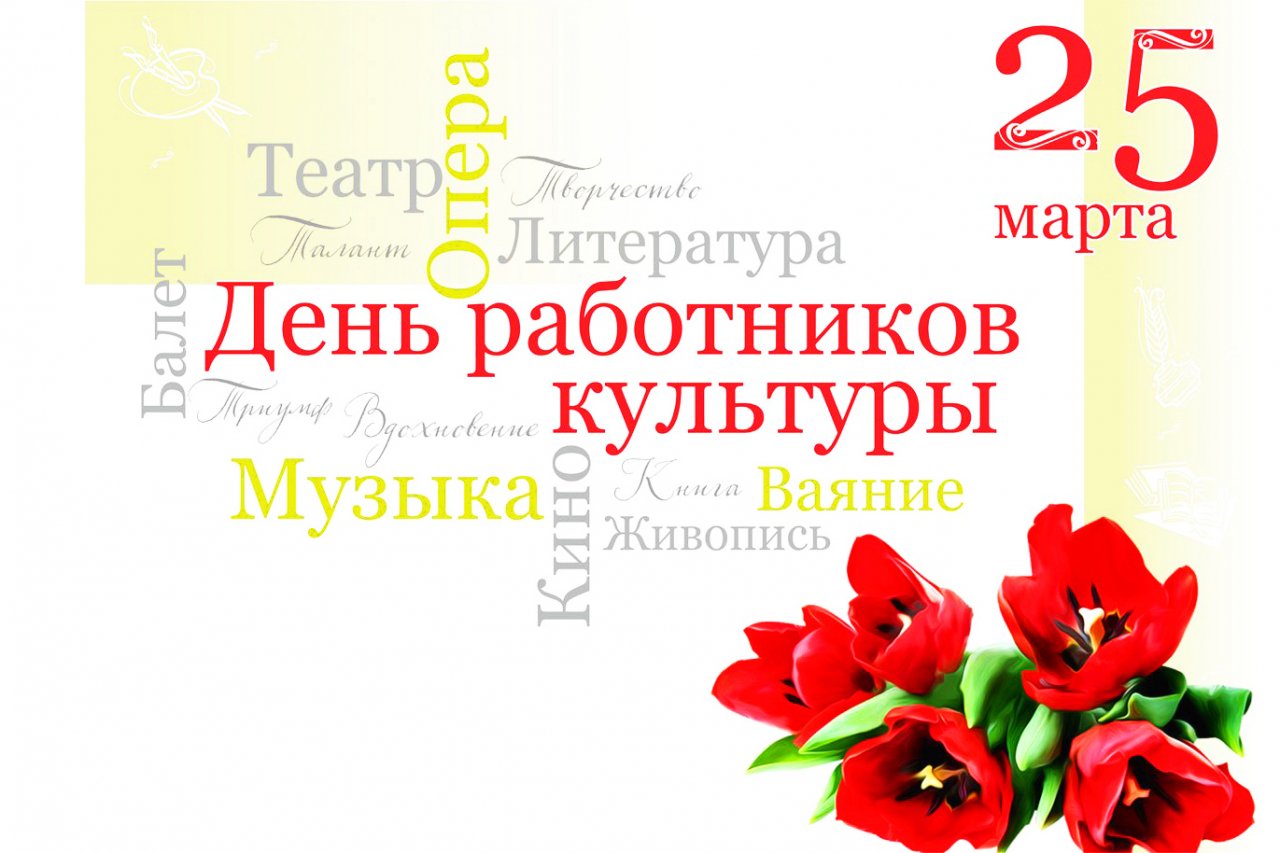 «25 марта День работников культуры отмечают свыше 6300 жителей Липецкой области, – говорится в поздравлении. – Это сотрудники музеев, библиотек, досуговых центров, театральных и музыкальных коллективов – люди самых разных творческих специальностей. Вы отдаете себя благородному делу сохранения культурного наследия и развития богатейших народных традиций, которые формируют духовное достояние нации, обеспечивают надежную связь между поколениями, влияют на нравственные устои общества, прививают любовь к Родине.