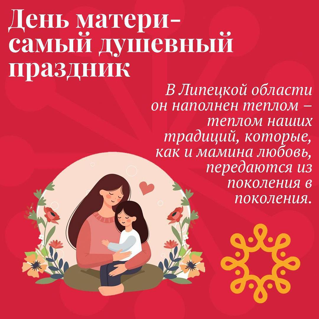 Министерство культуры Липецкой области поздравляет всех мам. Вы — как лучшие произведения искусства: вдохновляете, восхищаете и остаетесь навечно в сердцах.