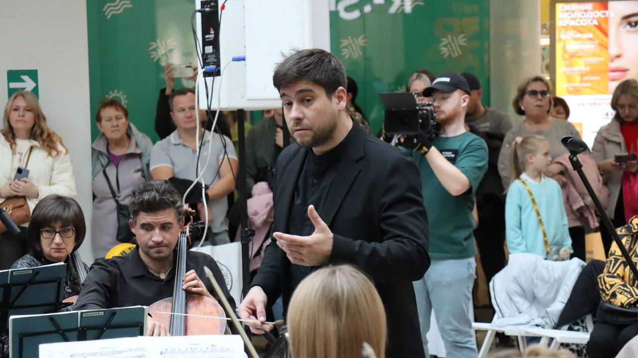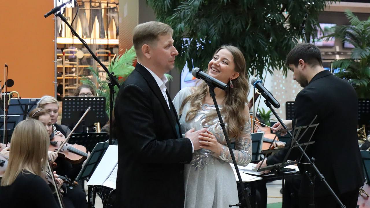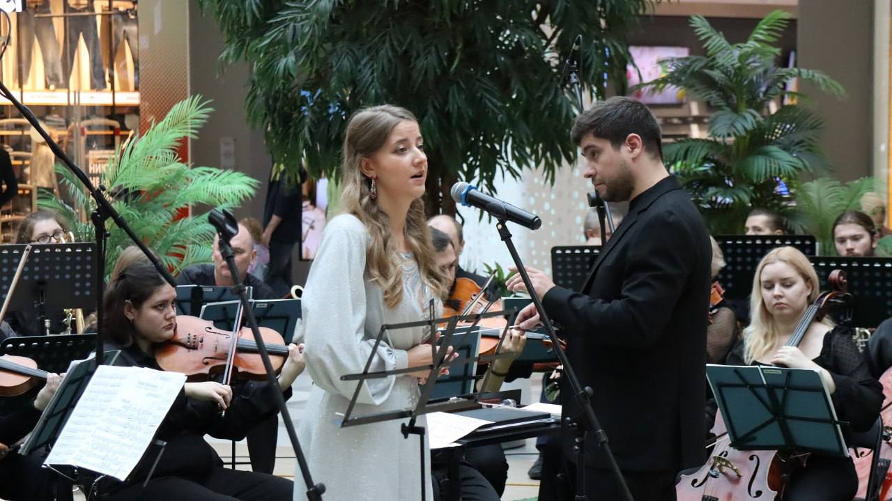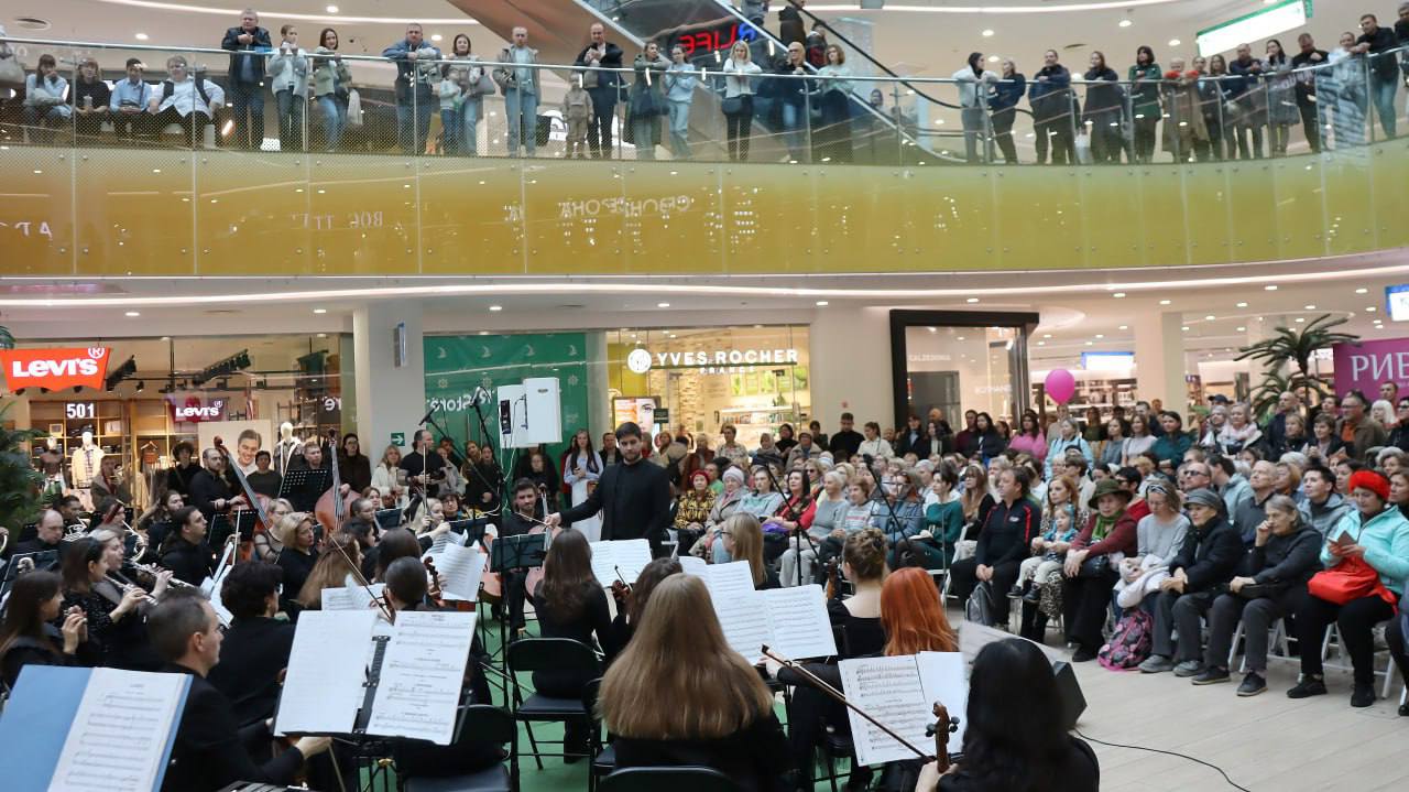 В ТРЦ «Ривьера» снова зазвучала живая музыка. Симфонический оркестр Липецкой филармонии под управлением Михаила Мясникова и ансамбль Унион-Бэнд во главе с Юрием Беляевым дали совместный концерт в просторном атриуме торгового центра.