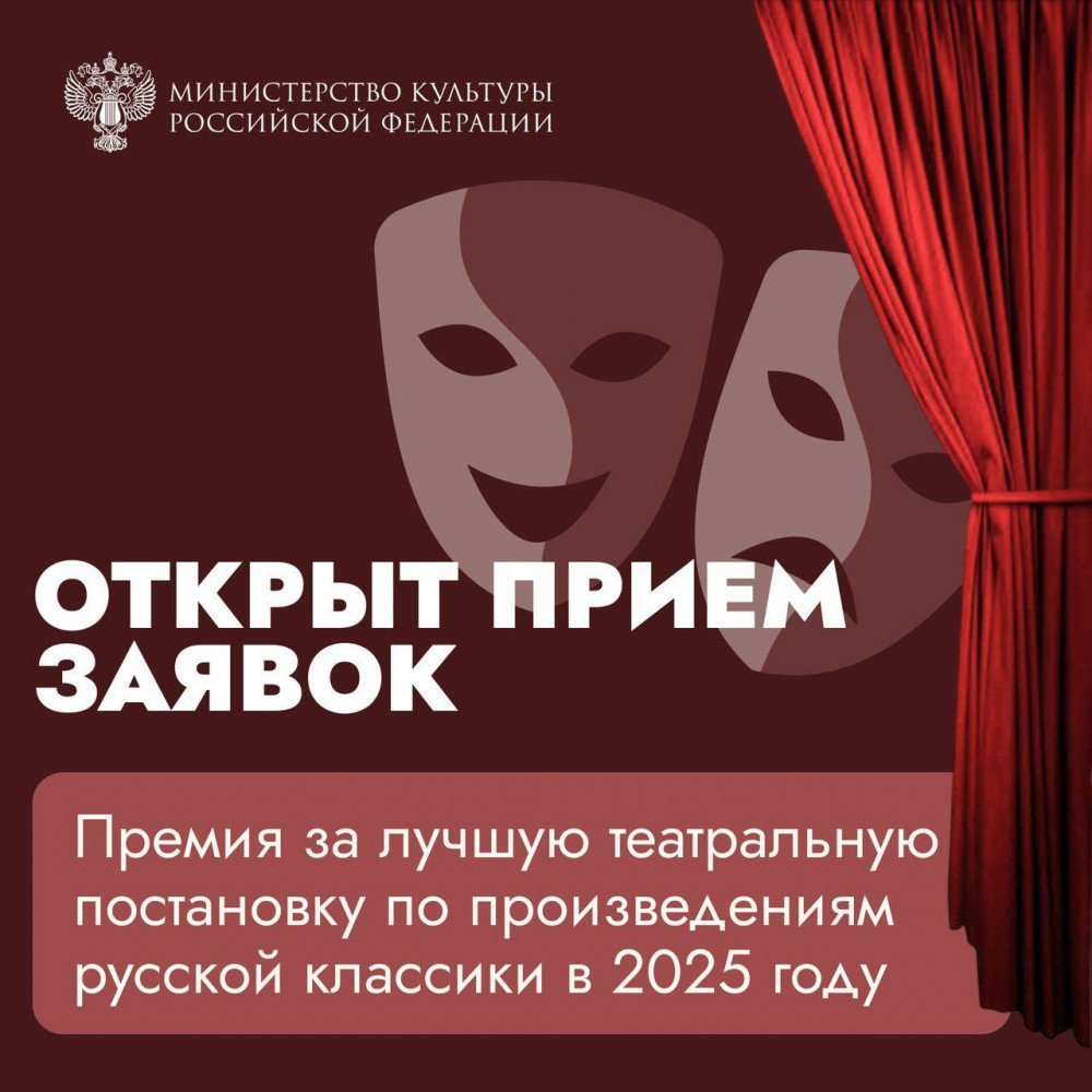 Открыт прием заявок на премию за лучшую театральную постановку по произведениям русской классики в 2025 году.