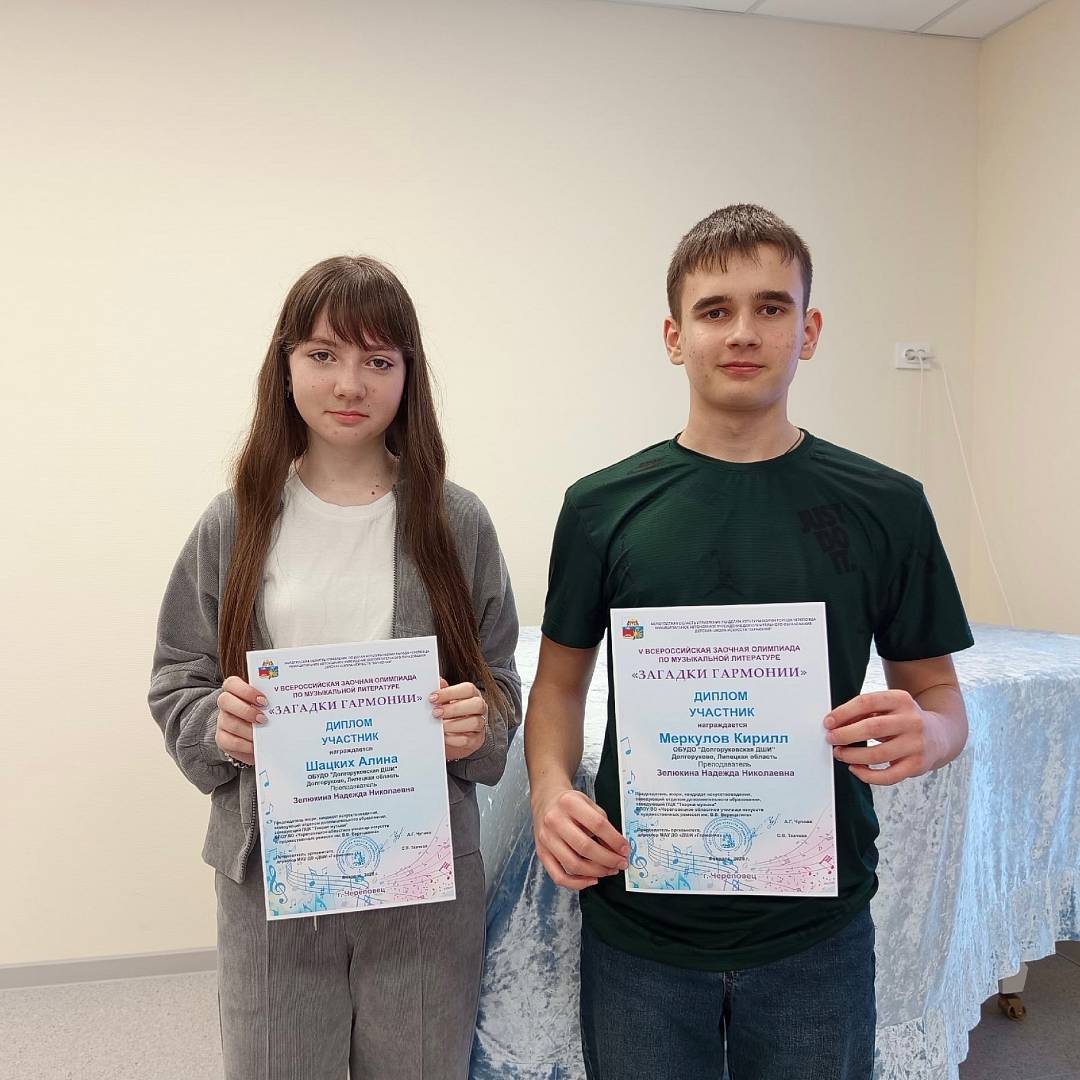 Учащиеся Долгоруковской ДШИ приняли участие в V Всероссийской заочной олимпиаде по музыкальной литературе «Загадки гармонии».