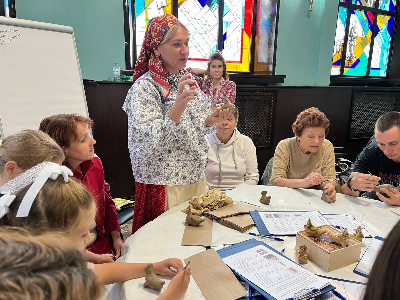 Анастасия Короленко и Ольга Волокитина показывают глиняную игрушку, где узнаваемый липецкий стиль получает новое прочтение. Людмила Люрис демонстрирует текстильную куклу и вышивку с точным чувством формы. Наталья Зимарина работает с набойкой по ткани, предлагая свежий взгляд на традиционную технику.