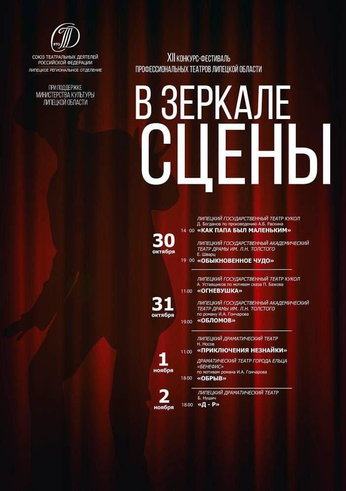 С 30 октября по 2 ноября в Липецке пройдёт XII конкурс-фестиваль профессиональных театров Липецкой области «В зеркале сцены».