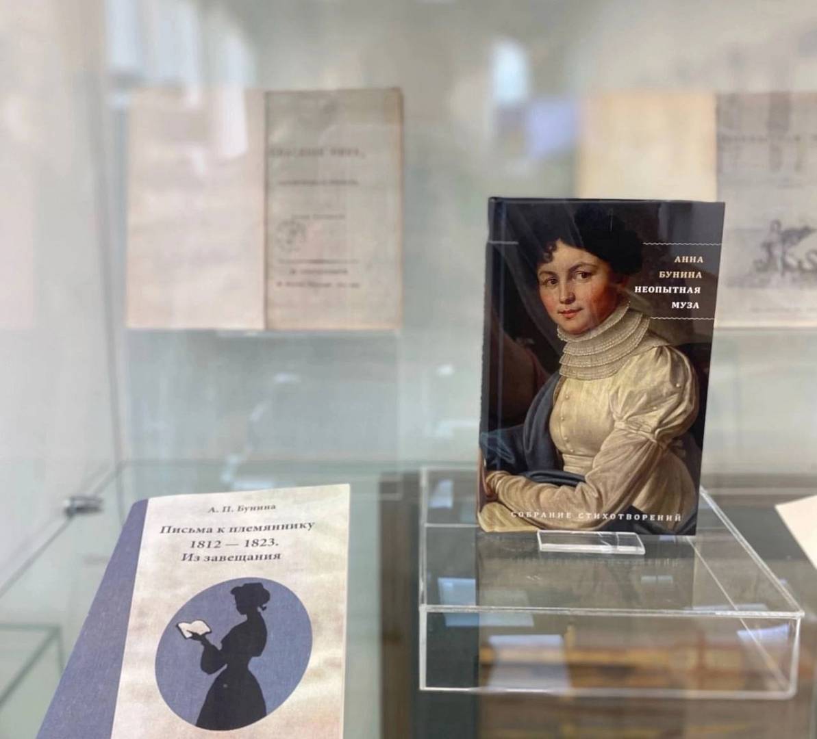 В экспозиции представлены уникальные экспонаты: сборник стихов «Неопытная муза», изданный в 1809 году, и письмо Анны Буниной писателю Вальтеру Скотту, отправленное в Шотландию. Сотрудники Рязанки привезли единственный прижизненный портрет поэтессы и воссоздали её исторический костюм, чтобы максимально передать дух эпохи.