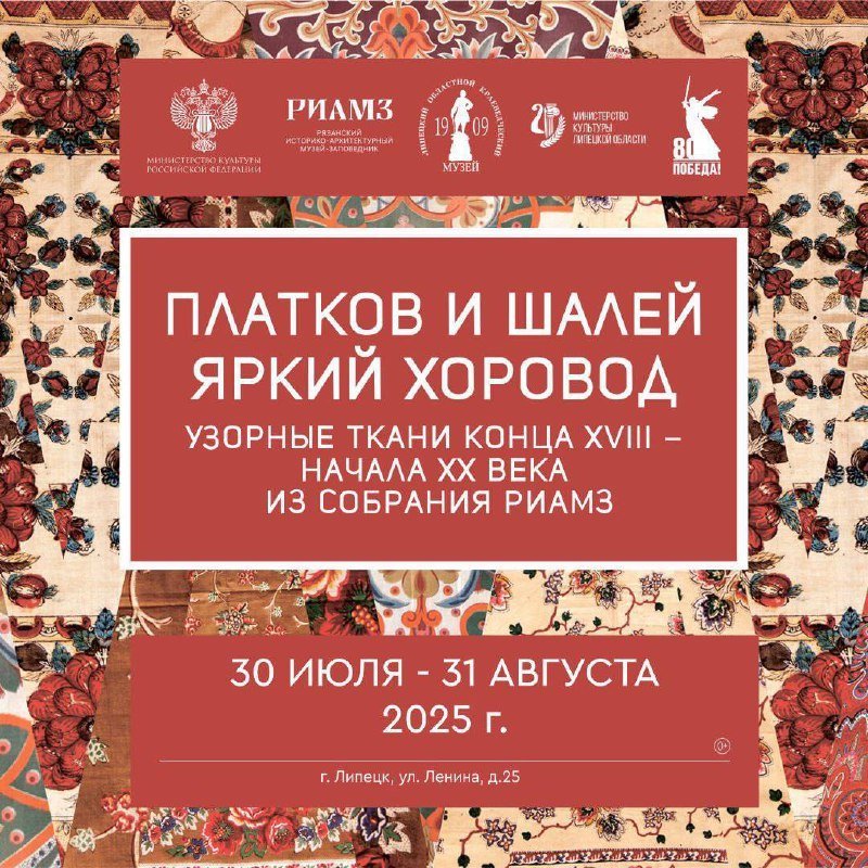 ВАМ ПИСЬМО ИЗ ПРОШЛОГО: РАСШИФРУЙТЕ ТАЙНЫ СТАРИННЫХ ПЛАТКОВ! 30 июля в 14:00 в краеведческом музее состоится открытие выставки «Платков и шалей ярких хоровод». На выставке представят уникальную коллекцию платков и шалей Рязанского историко-архитектурного музея-заповедника.