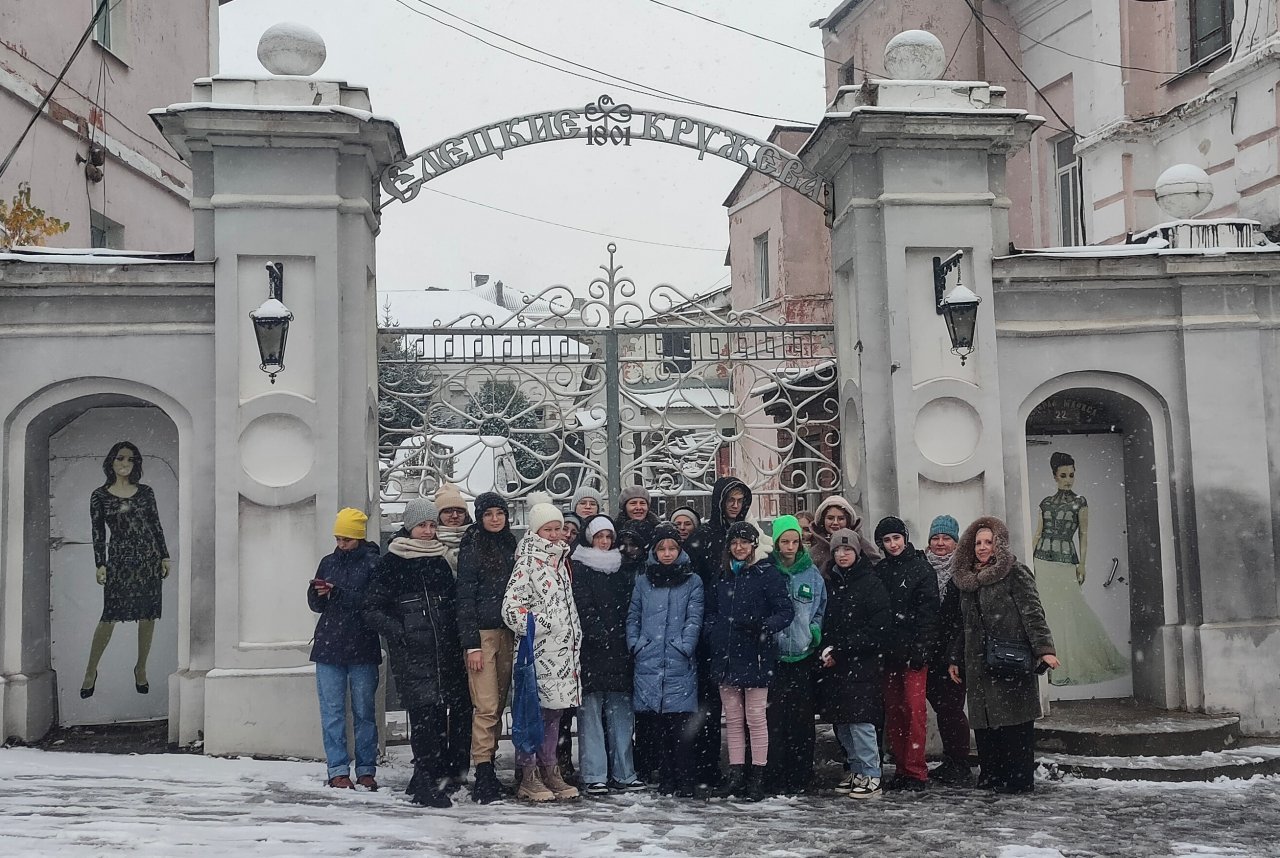 Затем состоялась экскурсия на фабрику «Елецкие кружева», где главный художник Карлова Н.Д. рассказала об уникальности создания кружевного плетения. Ребята увидели мастериц в деле, оценили работу автоматических вязальных машин, сохранившихся с 1948 года.