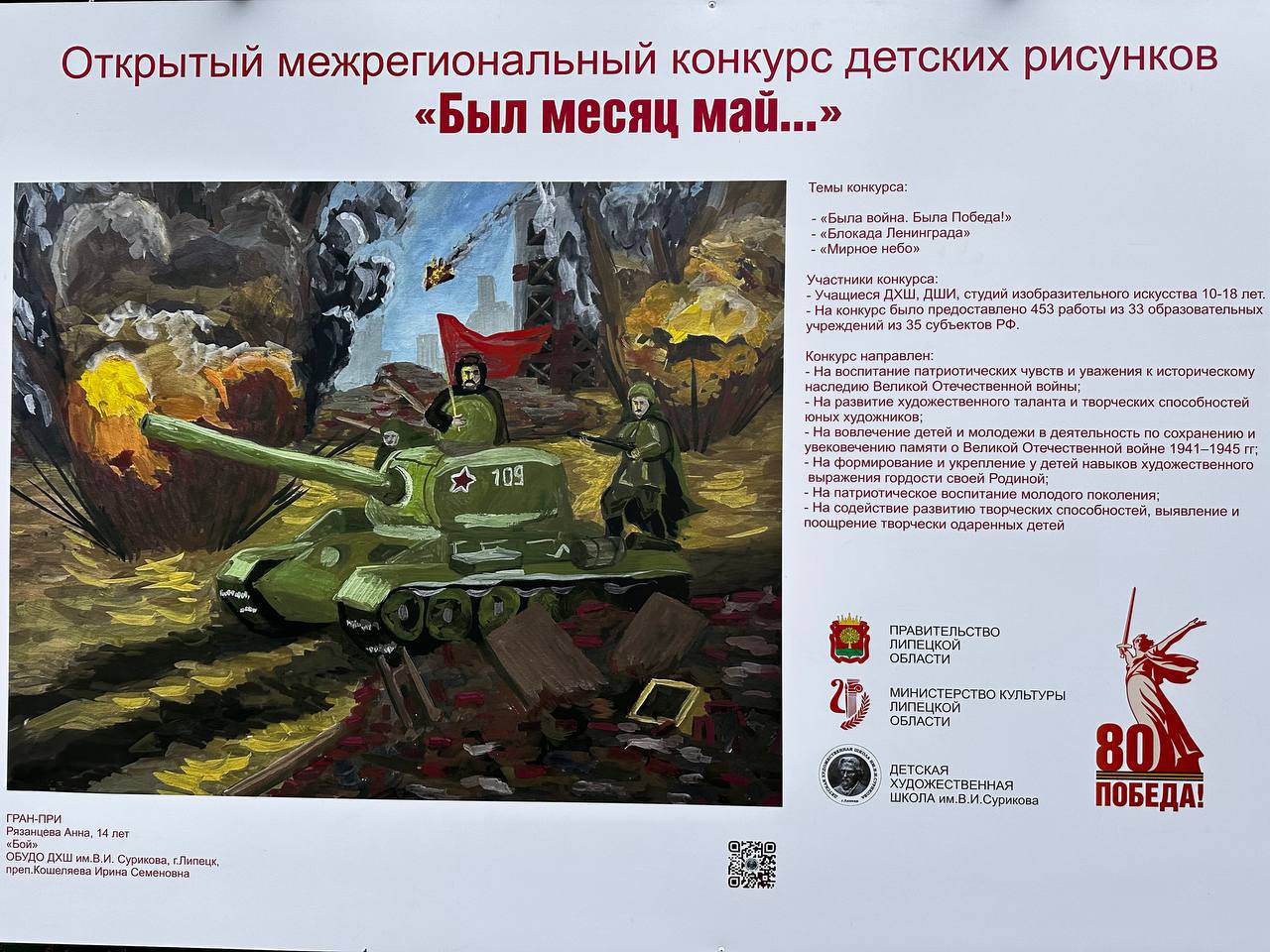 На бульваре Сорокина открылась выставка работ победителей Открытого Межрегионального конкурса художественного творчества «Был месяц май», посвященного 80-летию Победы в Великой Отечественной войне.