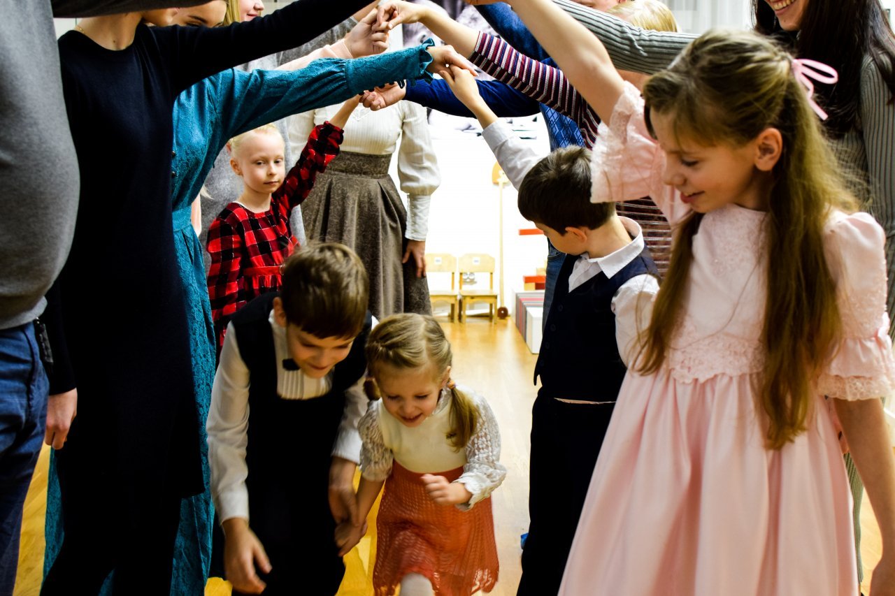 Костюмированное театрализованное представление дополнили интерактивами и мастер-классами, во время которых гостей познакомили с историей елочных украшений и научили упаковке новогодних подарков из подручных материалов. Во время историчных игр возле ёлки зал второго этажа наполнился смехом и радостными фантами, которые придумывали друг для друга сами гости, увлеченные потоком традиционного бального ручейка. Тем драматичнее прозвучало сообщение, что получена открытка с фронта, которое так долго и трепетно ждет вся семья. В завершении сюжетной линии, представление продолжилось мастер-классом по созданию рождественской открытки в технике киригами.