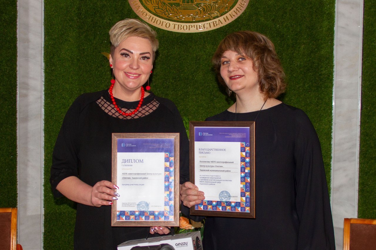 Награду за первое место в направлении «Лучший участник акции» получил МБУК многопрофильный Центр культуры «Элегия» Задонского муниципального района, за второе – МАУК «Хлевенский межпоселенческий Центр культуры и досуга». Третье место поделили МБУК «Межпоселенческий координационно-методический центр» Грязинского муниципального района и МБУ «Межпоселенческий координационно-методический центр» Лебедянского муниципального района.