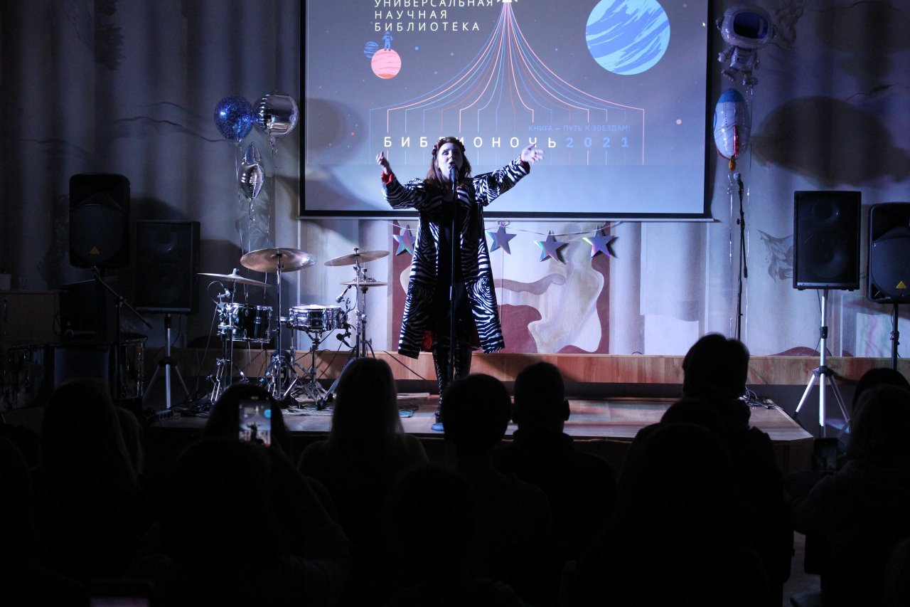 Старт «Библионочи ‑ 2021» дало потрясающее лазерное шоу от команды LazzerLip. Гости вечера стали свидетелями настоящего технического чуда — объёмные планеты, искусственные спутники Земли и другие небесные тела возникали перед глазами прямо в воздухе. Также на открытии «Библионочи» выступила вокалистка, лауреат всероссийских и международных конкурсов Лилия Пищикова. В её исполнении прозвучала одна из самых любимых песен летчиков-космонавтов СССР — «Нежность», написанная композитором Александрой Пахмутовой и поэтами Сергеем Гребенниковым и Николаем Добронравовым. Ещё один звёздный коллектив, открывший «Библионочь» своим космическим многоголосием — Липецкий камерный хор под руководством заслуженного артиста РФ Игоря Михайловича Цилина, исполнивший популярную песню 60-х «Московские окна». Всех присутствующих не оставили равнодушными и кадры из видеоролика, в котором своими впечатлениями о первом полёте человека в космос поделились очевидцы — липчане.