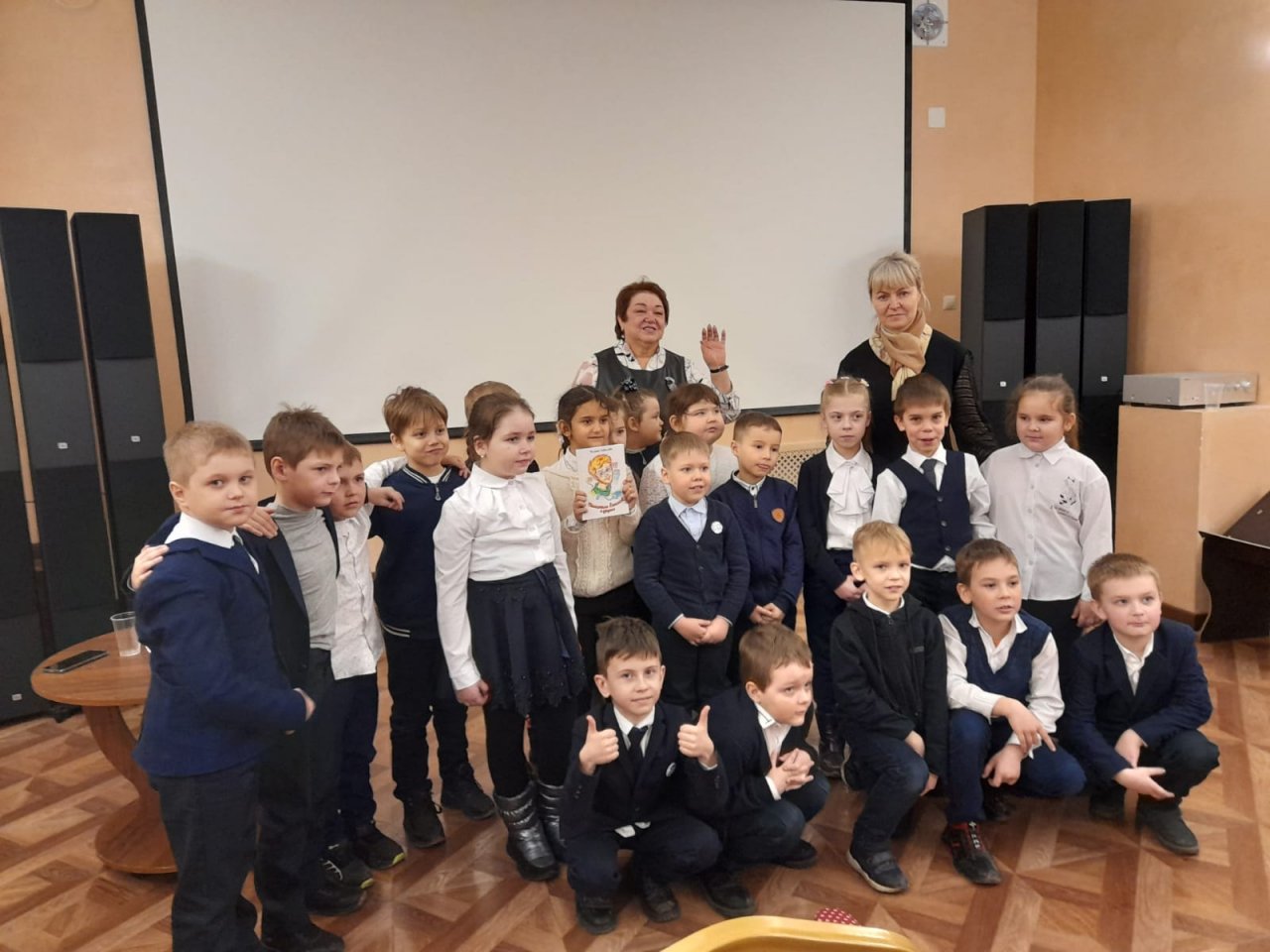 Галина Валентиновна - наша землячка. Сейчас она работает в библиотеке «Проспект» МУ ЦБС города Липецка. Она рассказала, о том, что в ее библиотеке есть студия «Воскресная акварель», где под руководством художника Ирины Леонидовны Чемякиной дети рисуют интересные образные работы. Студийцы вызвались нарисовать иллюстрации к книге Галины про Ежикова, которая получила такую высокую награду в этом году. Первоклашки смогли полюбоваться этими рисунками на большом экране в зале Дома музыки, активно участвовали в обсуждении и задавали свои вопросы. Встреча прошла тепло, и малыши уходили с улыбками.