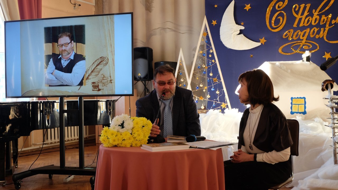 Директор библиотеки Анна Волкова сердечно поздравила юбиляра и поблагодарила его за служение литературе, активную общественную деятельность и плодотворное сотрудничество с библиотекой в деле продвижения чтения. Музыкальным подарком виновнику торжества стали песни в исполнении молодого сотрудника библиотеки Даниила Ишкова. Творческий путь становления поэта и прозаика проследила ведущая встречи Вера Печурова.