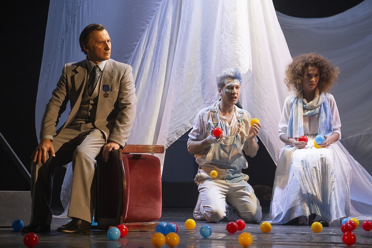 - Тот самый Мюнхгаузен – непонятный, свободный и непредсказуемый, а потому опасный для мира человек. Его чудеса в трактовке режиссера стали театральными придумками, которые совершенно не имеют практической пользы. Легендарный барон-сочинитель живет в пространстве бесконечного воображения. Там, где всё возможно», - комментируют свою постановку в Драматическом театре «На Литейном» режиссёр Александр Серенко.