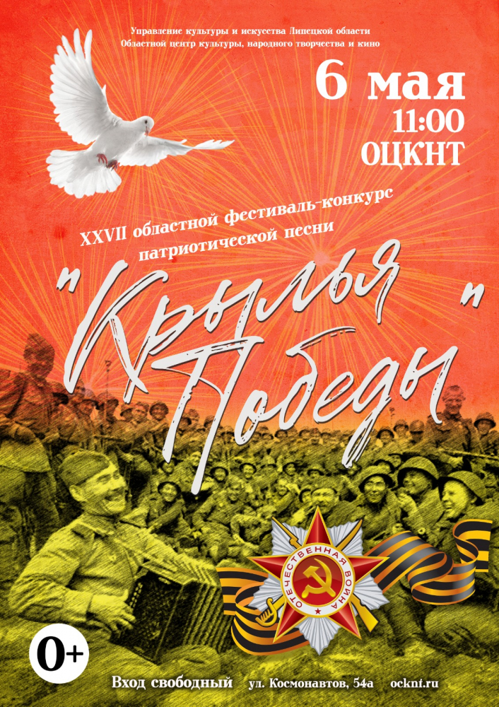 - Финал XXVII Областного фестиваля-конкурса патриотической песни «Крылья Победы» состоится в ОЦКНТ