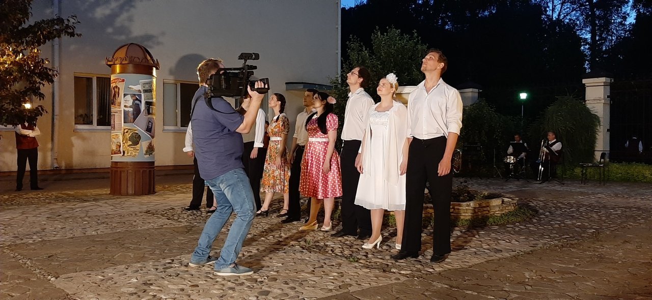 Мизансцены мирной жизни – три условные локации программы: «Городской парк», «Деревенский пятачок» и «Школьный выпускной» сменяет кинохроника времен начала Великой Отечественной войны и стихи советских поэтов.