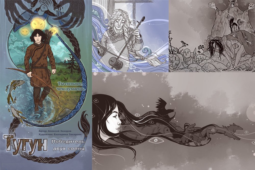 Этот глобальный проект объединил три российских региона: Сахалинскую, Курганскую и Липецкую области. Автор Алексей Захаров из Кургана написал историю, основанную на легендах коренного этноса Сахалина – нивхов. Над визуальной составляющей работала Екатерина Захарова (творческое имя – Хольда) – профессиональный иллюстратор и художник из Ельца. Идейным вдохновителем и куратором творческого процесса выступил Сахалинский ОЦНТ. Так родился красочный, великолепно оформленный графический роман «Тугун. Победитель двух солнц».