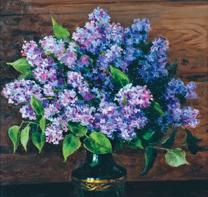 Многие художники в своих картинах отражали красоту, очарование и нежность сирени. Она напоминает всем о мае, когда природа предстает в полном своем великолепии. Сирень была одним из любимых цветов заслуженного художника России Нины Васильевны Скорубской. Её пышные соцветия появляются во многих полотнах художницы. Особенно прекрасны её натюрморты с сиренью.