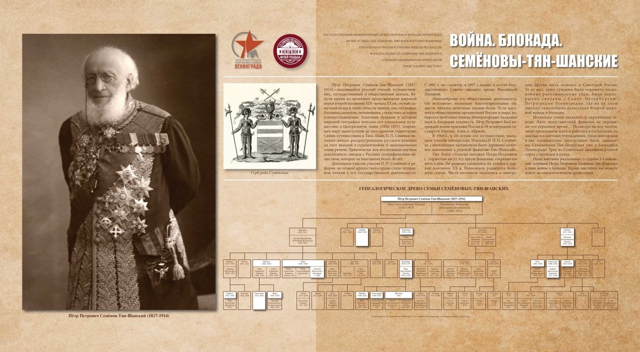 25 марта 2021 года в 17.00 в Государственном мемориальном музее обороны и блокады Ленинграда (Санкт-Петербург, Соляной переулок, д. 9) состоится открытие выставки «Война. Блокада. Семеновы-Тян-Шанские».