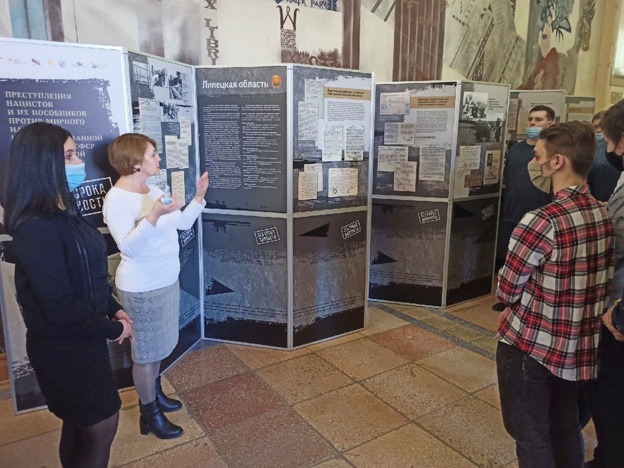 Выставка «Без срока давности» – один из этапов реализации на территории региона одноименного Всероссийского проекта. С материалами выставки с начала ее работы в сентябре 2020 года познакомилось более 5 тысяч студентов региона. Посетить экспозицию в Липецкой областной универсальной научной библиотеке можно до 7 апреля 2021 года.