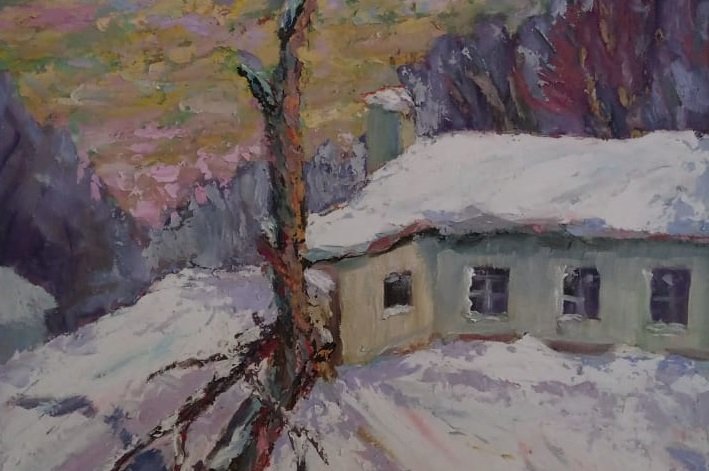 Особо удаются художнику снежные русские зимы с лазурными тенями, сложными пастельными оттенками белого и контрастной палитрой зимних солнечных дней. Особую атмосферу в зимних пейзажах создают потемневшие от времени деревянные домики, сараи, заборы с глубокими синими тенями на фоне переливающегося разнообразием оттенков снега.
